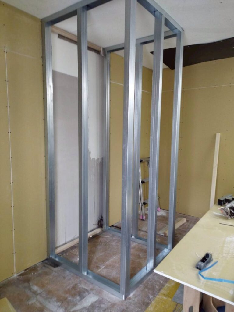 名古屋市|倉庫内にパテ練習スペースを新設|軽量下地・プラスターボード工事