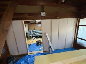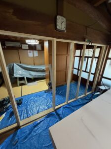 2025.11.05 和室に間仕切り壁を設置しました! ブログ 日常のこと こんにちは!ハイプランの渡辺です。 少しずつ気温も下がってきましたね。 今回は岐阜市のとっても歴史のある住宅に間仕切り壁とドア(建具は後日施工)を設置してきました。 これから寒くなってくるので、壁に断熱材を入れて防寒対策もバッチリです! お客様にもとっても喜んで頂けました。